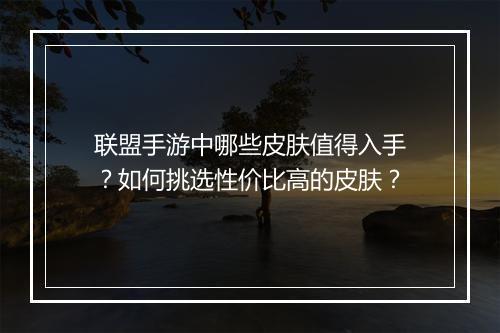 联盟手游中哪些皮肤值得入手?如何挑选性价比高的皮肤? 导语:随着手游市场的不断发展,越来越多的玩家加入了联盟手游的大家庭。在游戏中,皮肤作为角色外观的装饰,不仅能够提升角色的辨识度,还能增加游戏乐趣。那么,在众多皮肤中,哪些值得入手?如何挑选性价比高的皮肤...